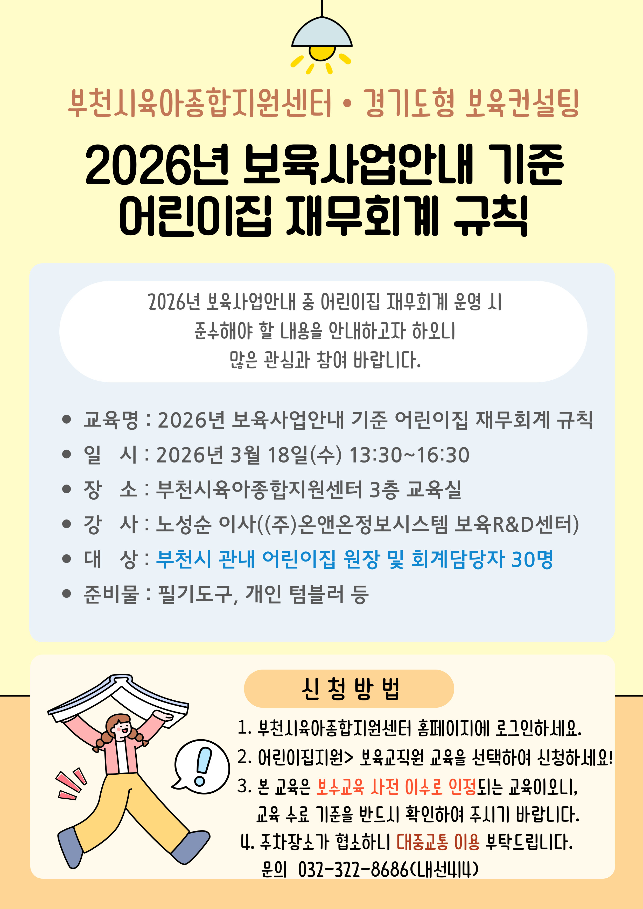 2026년 보육사업안내 기준 어린이집 재무회계 규칙 2026.03.18(수) 13:30 ~ 16:30