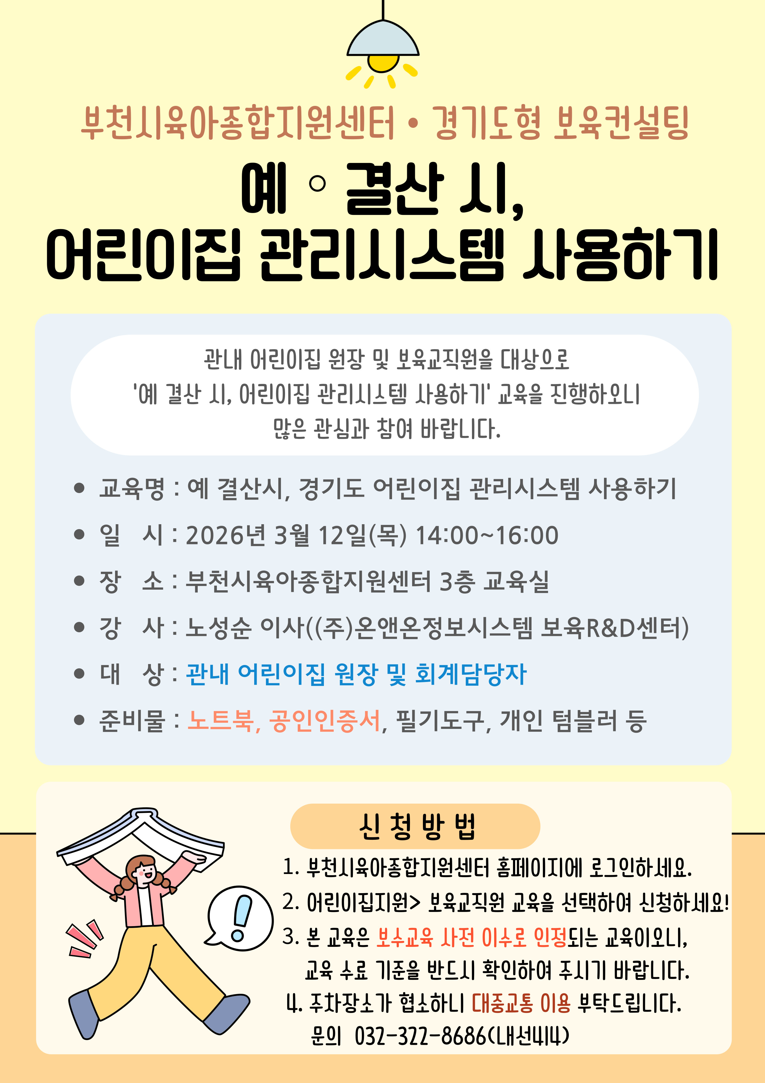 예결산 시 경기도 어린이집 관리시스템 사용하기 2026.03.12(목) 14:00 ~ 16:00