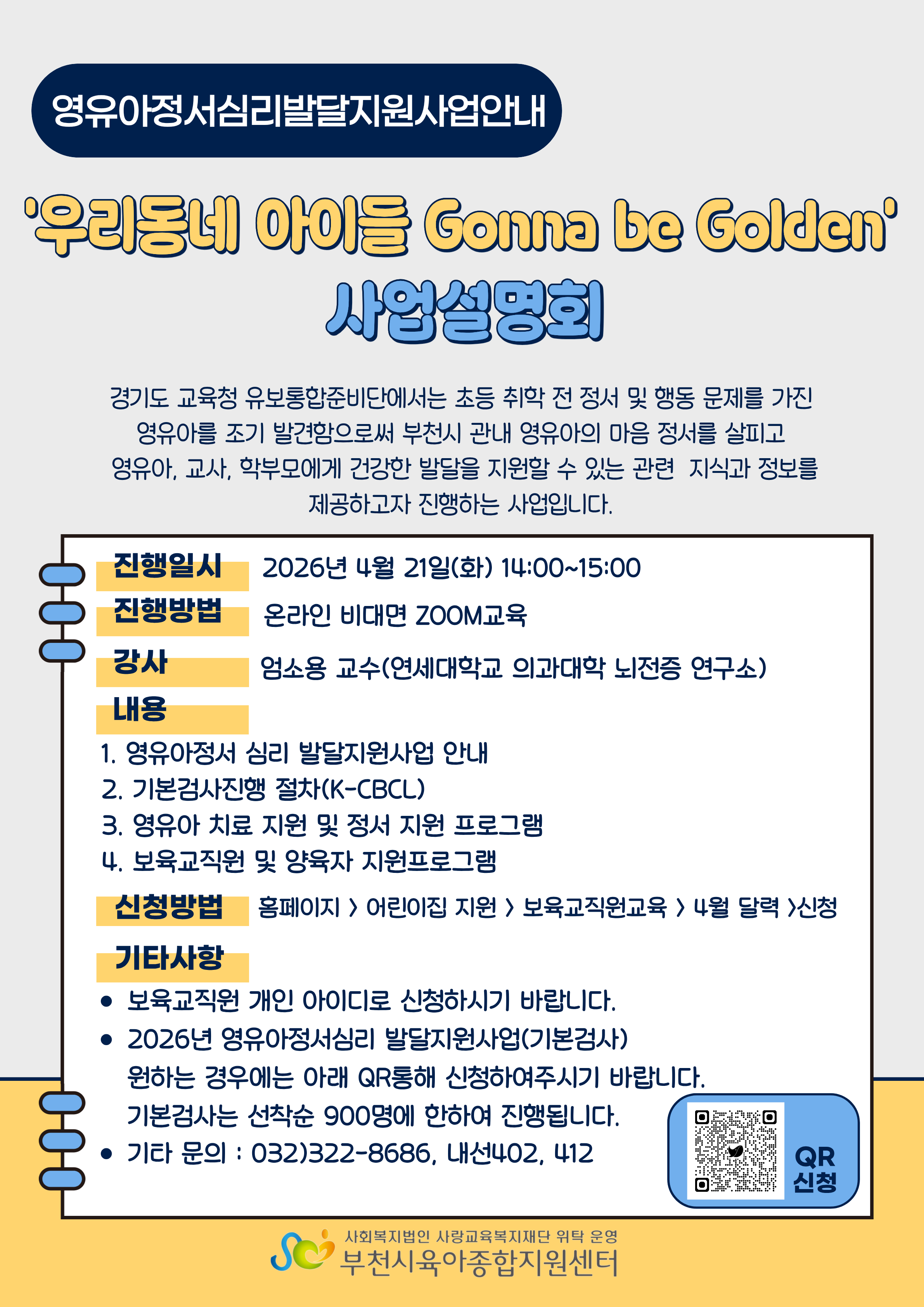 [영유아정서심리발달지원] 우리동네 아이들 Gonna be Golden'사업설명회 2026.04.21(화) 14:00 ~ 15:00