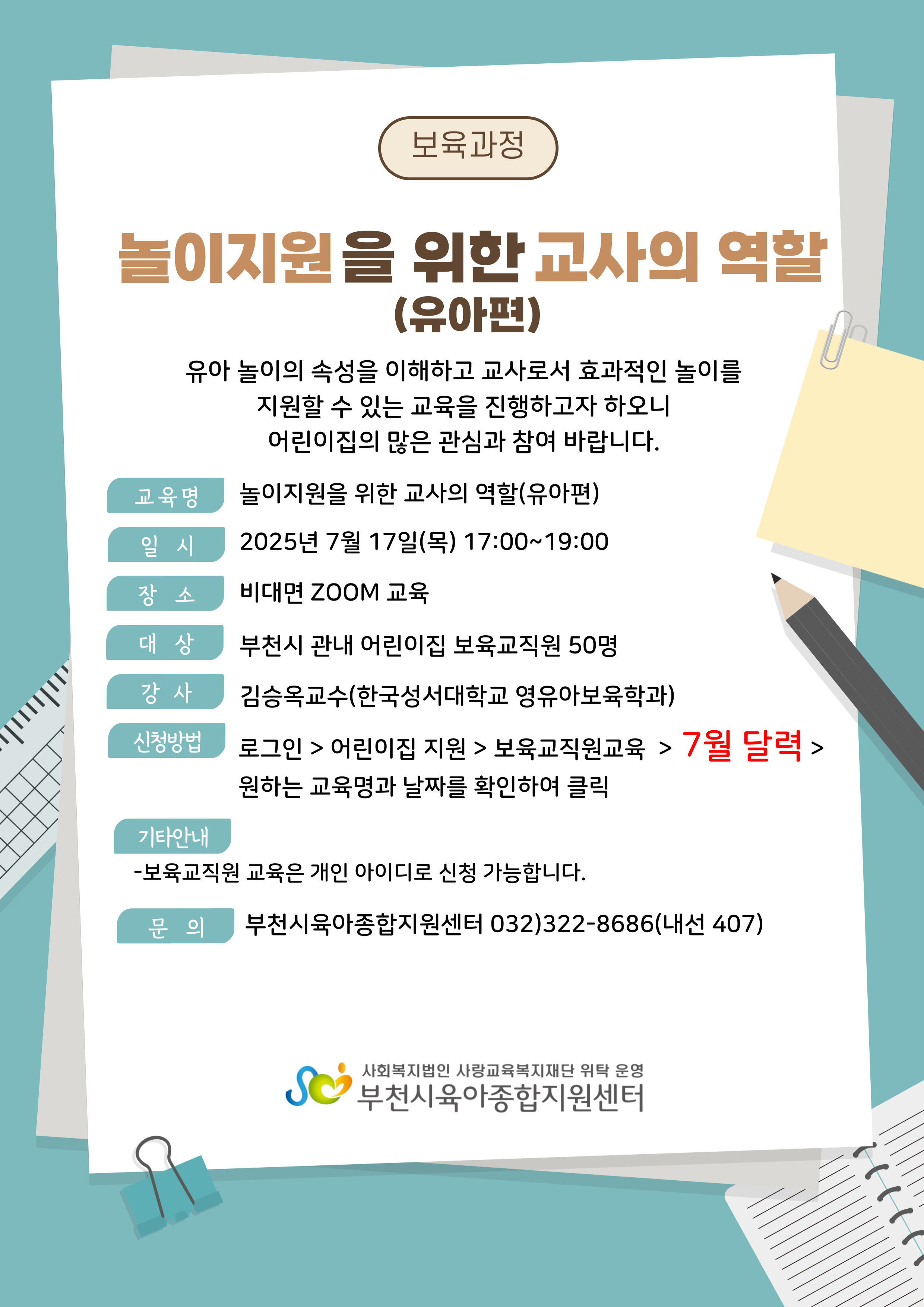 놀이지원을 위한 교사의 역할(유아반) 2025.07.17(목) 17:00 ~ 19:00