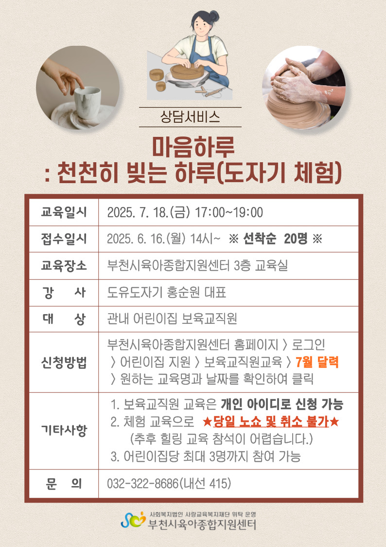 [상담서비스] 천천히 빚는 하루(도자기 체험) 2025.07.18(금) 17:00 ~ 19:00