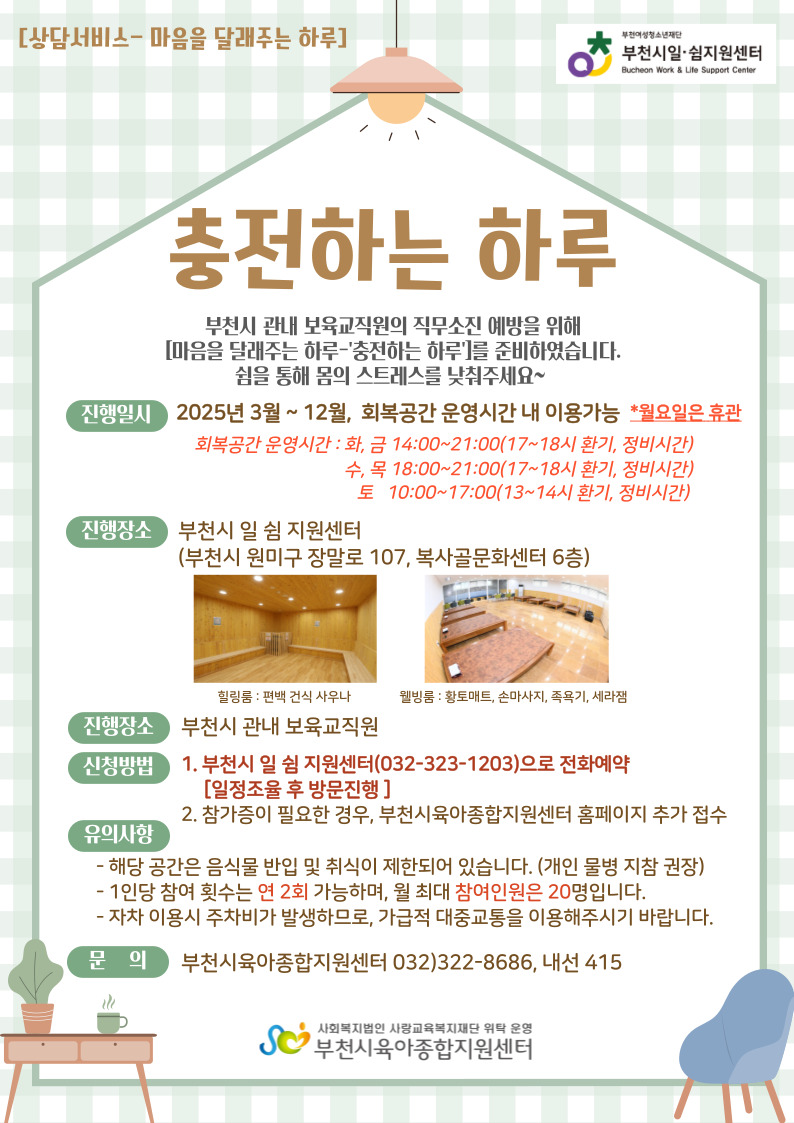 마음을 달래주는 하루 시리즈-7월 충전하는 하루(부천시일쉼지원센터 힐링프로그램)