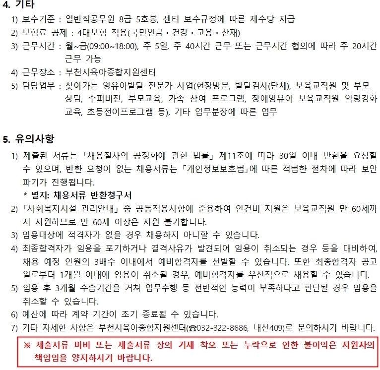 부천시 대체인력 지원