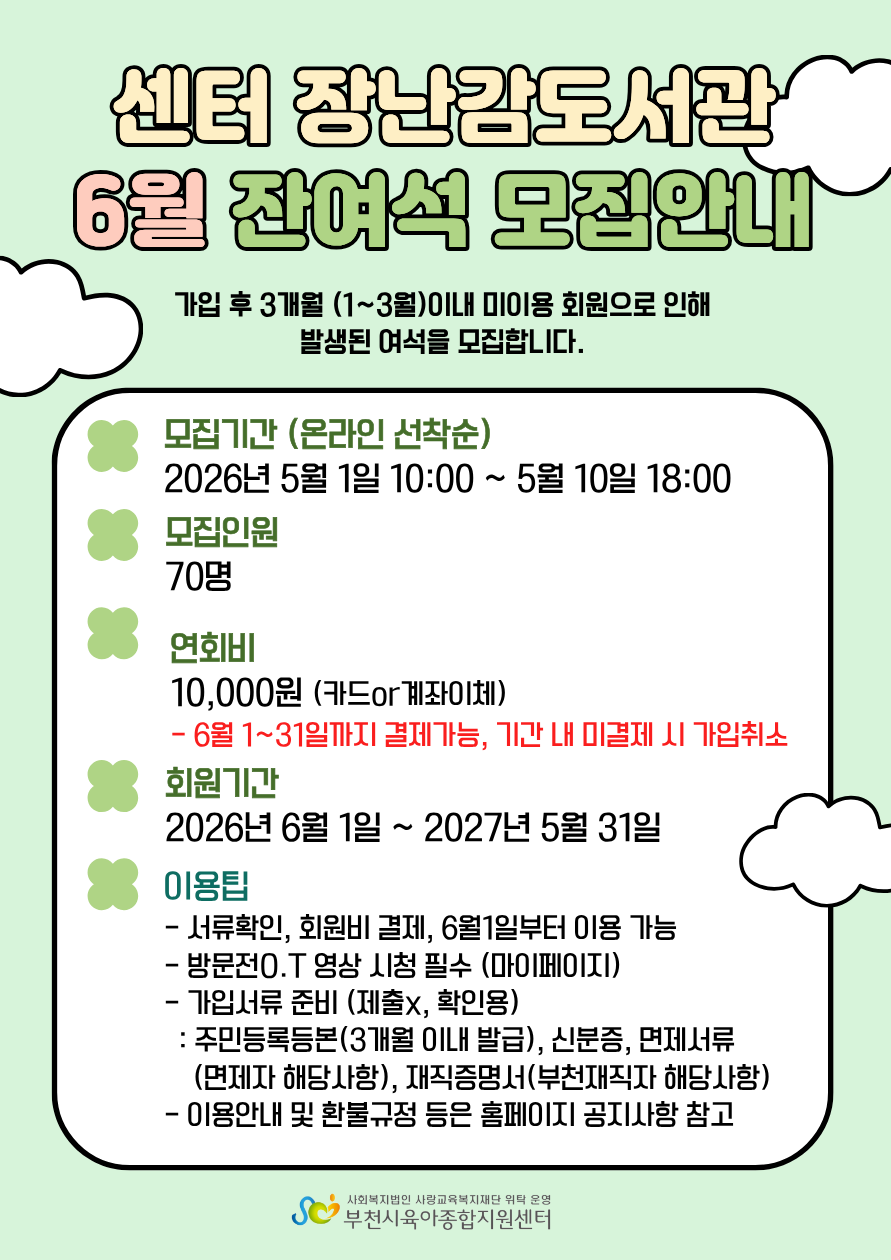 [센터] 2026년 6월 장난감도서관 회원 잔여석 모집 안내 (센터장난감도서관)