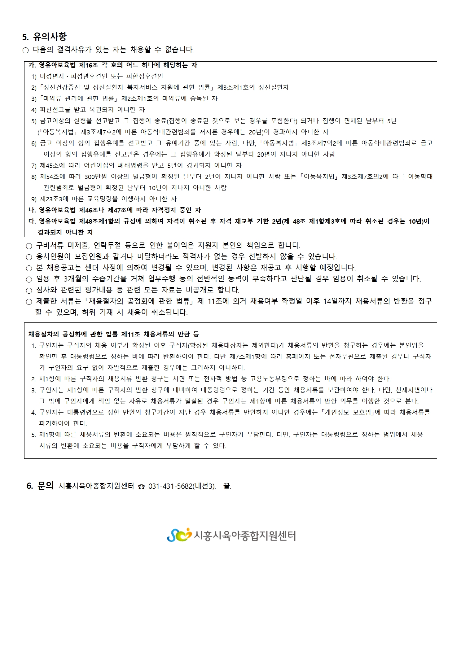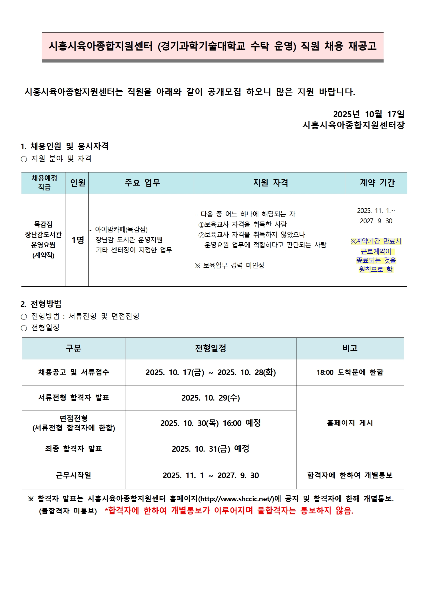 [외부] [시흥시육아종합지원센터] 직원(장난감 도서관 운영요원-목감점) 채용 안내