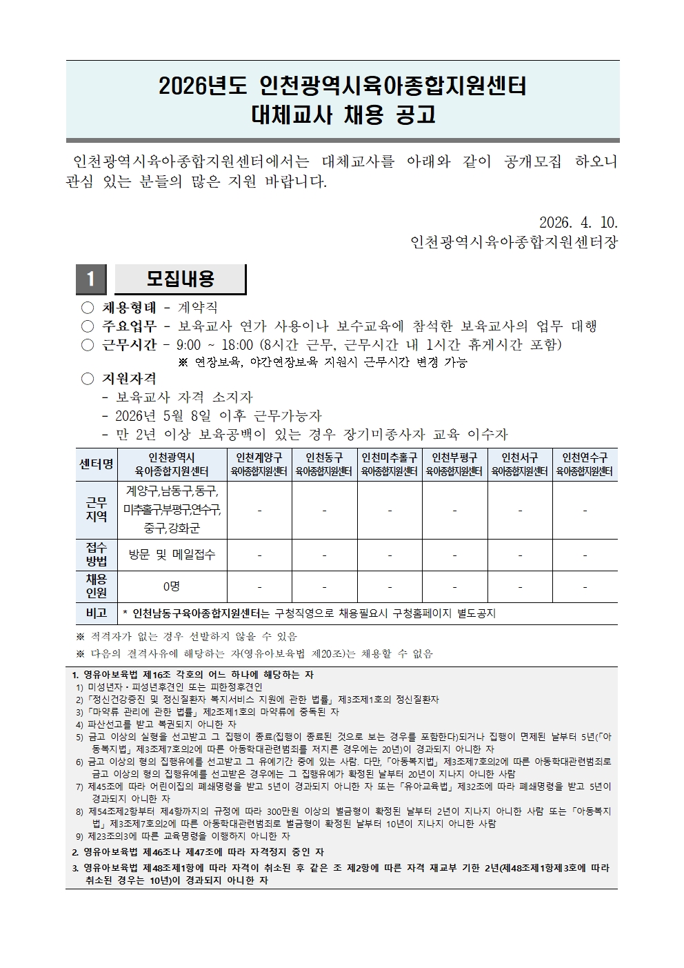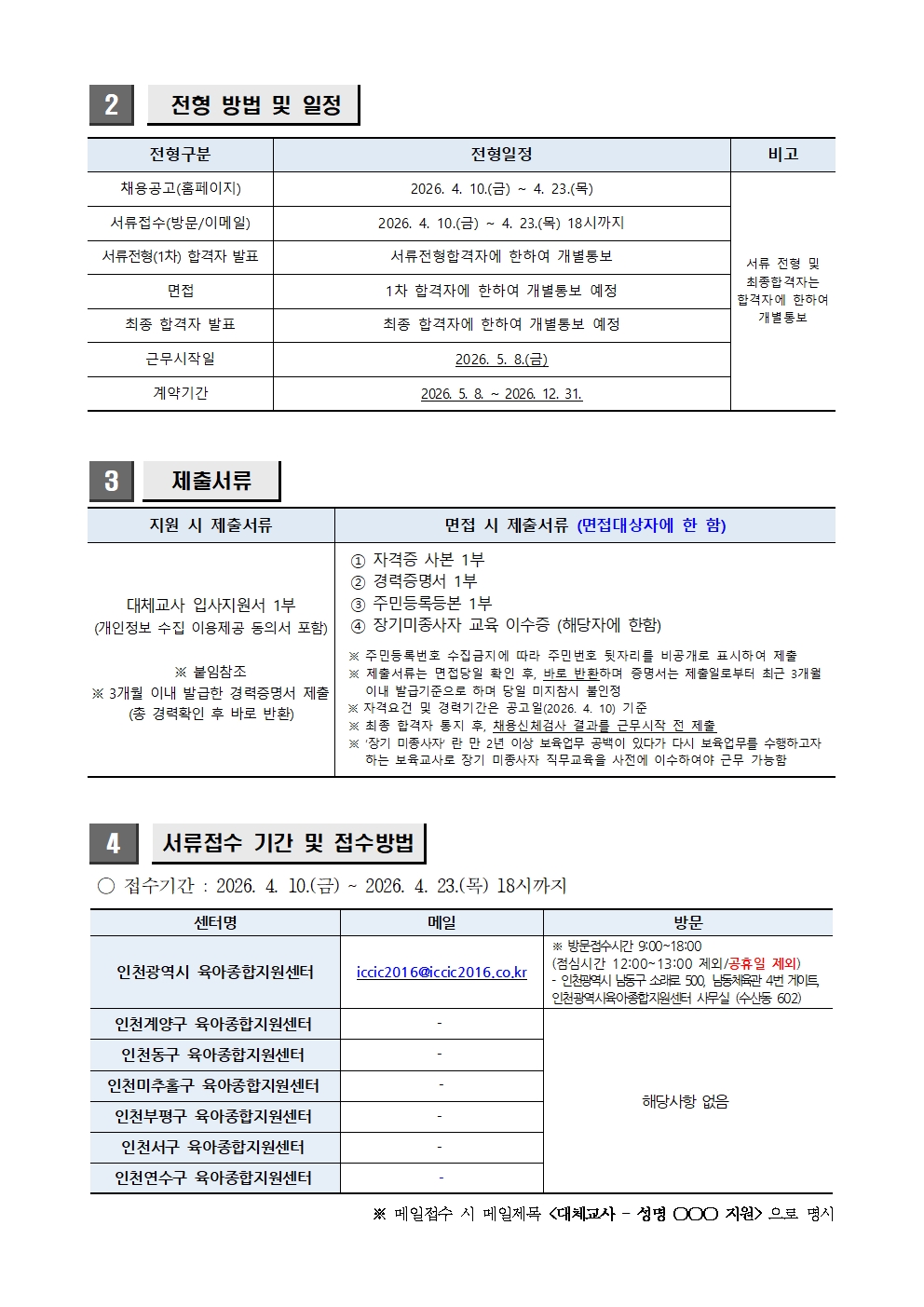 [외부] [인천광역시육아종합지원센터] 대체교사 채용 안내