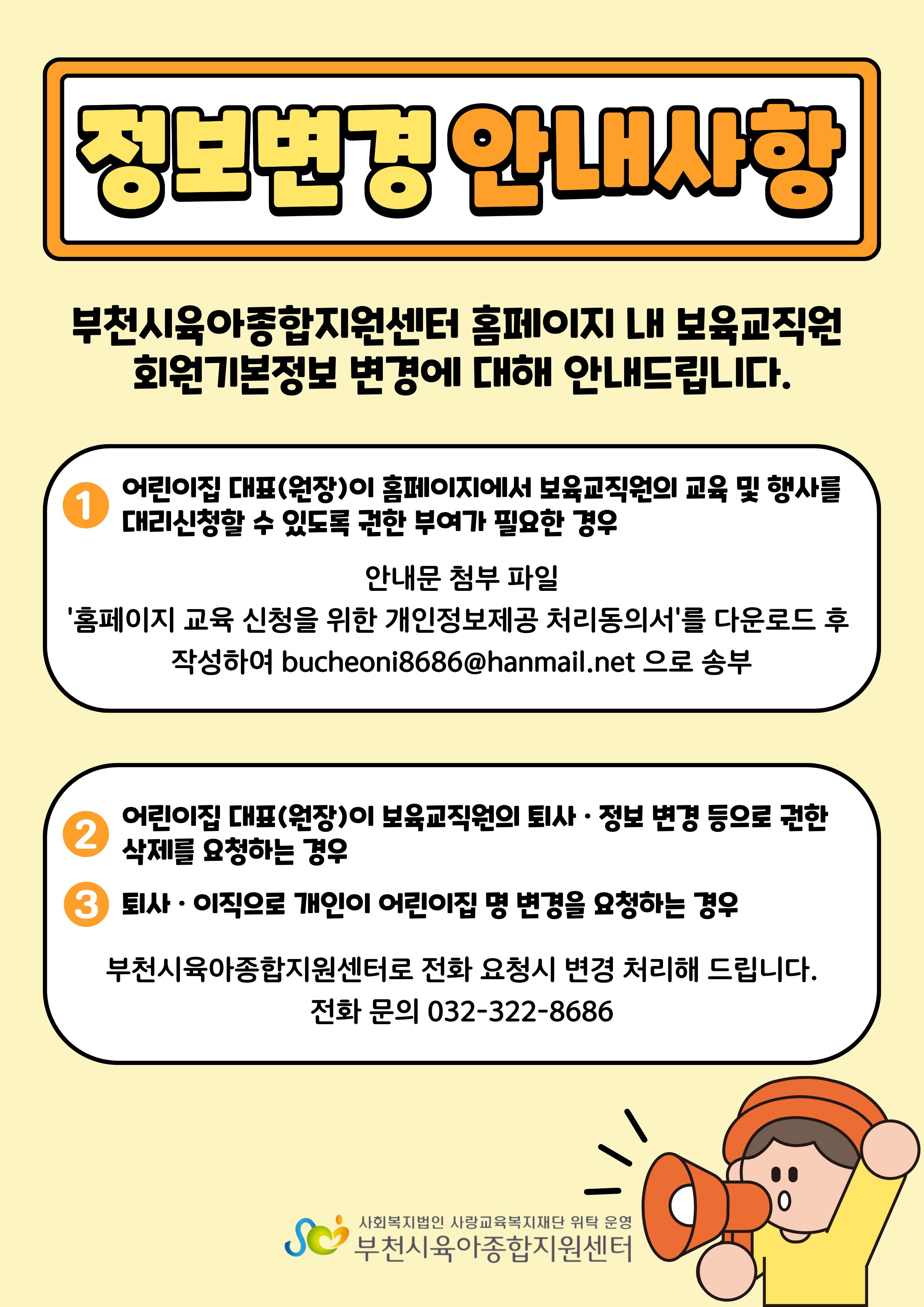 [센터] 부천시육아종합지원센터 홈페이지 내 회원 정보 변경 안내사항
