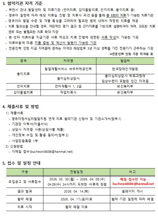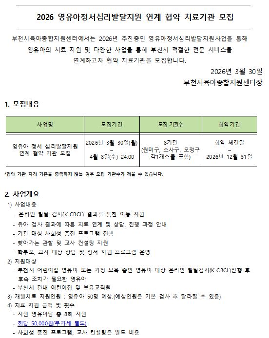 [센터] 2026 영유아정서심리발달지원 연계 협약 치료기관 모집
