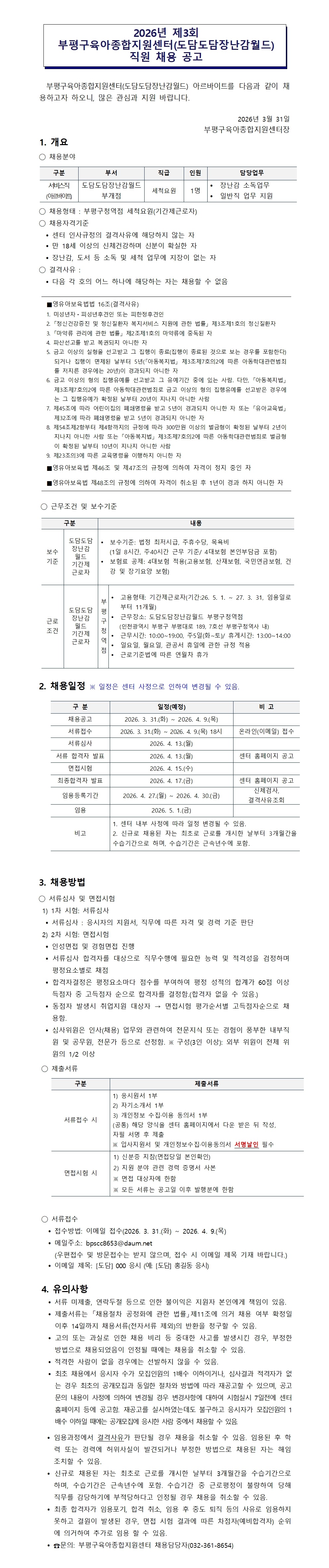 부천시 대체인력 지원