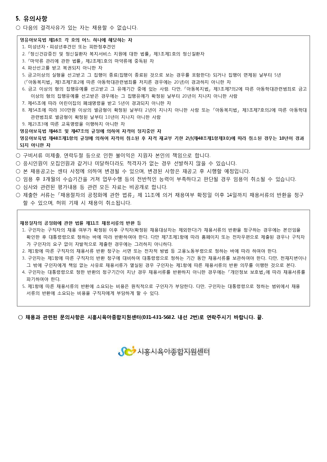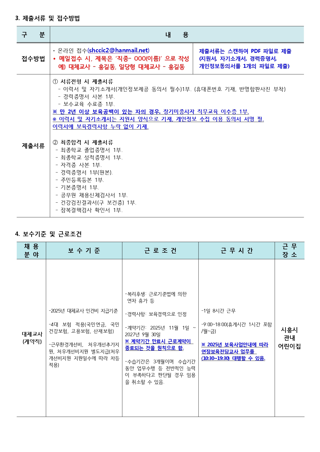 [외부] [시흥시육아종합지원센터] 직원(대체교사) 채용 안내
