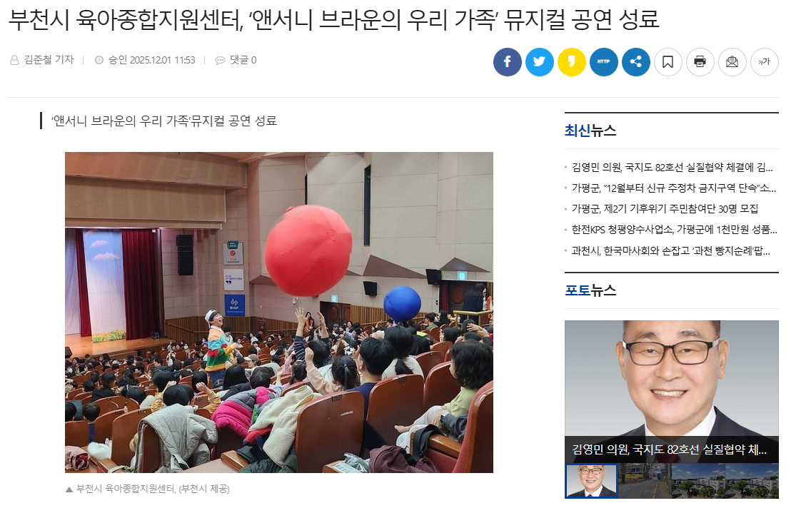 부천시 육아종합지원센터, ‘앤서니 브라운의 우리 가족’ 뮤지컬 공연 성료 - 서프라이즈뉴스