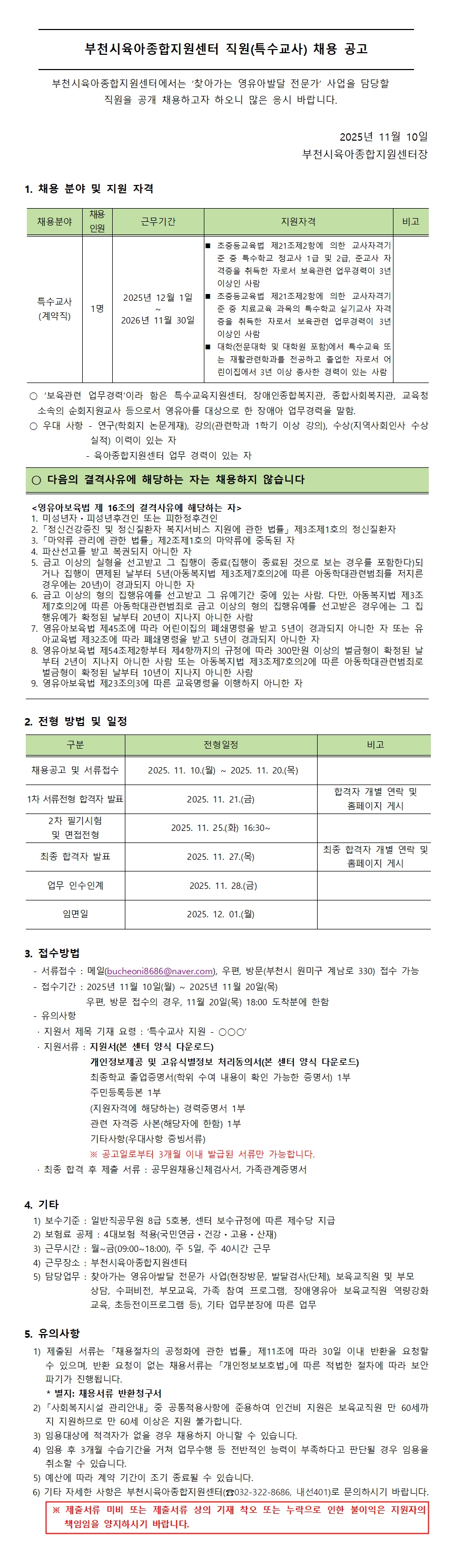 [인천미추홀구육아종합지원센터] 보육전문요원(출산 및 육아휴직 대체) 채용 안내