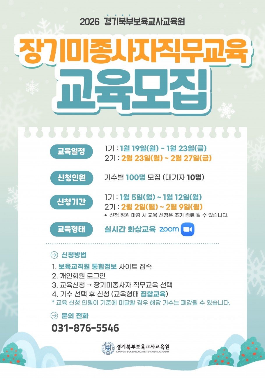 [외부] [경기북부보육교사교육원] 2026 장기미종사자 직무교육 교육 모집(1, 2기)