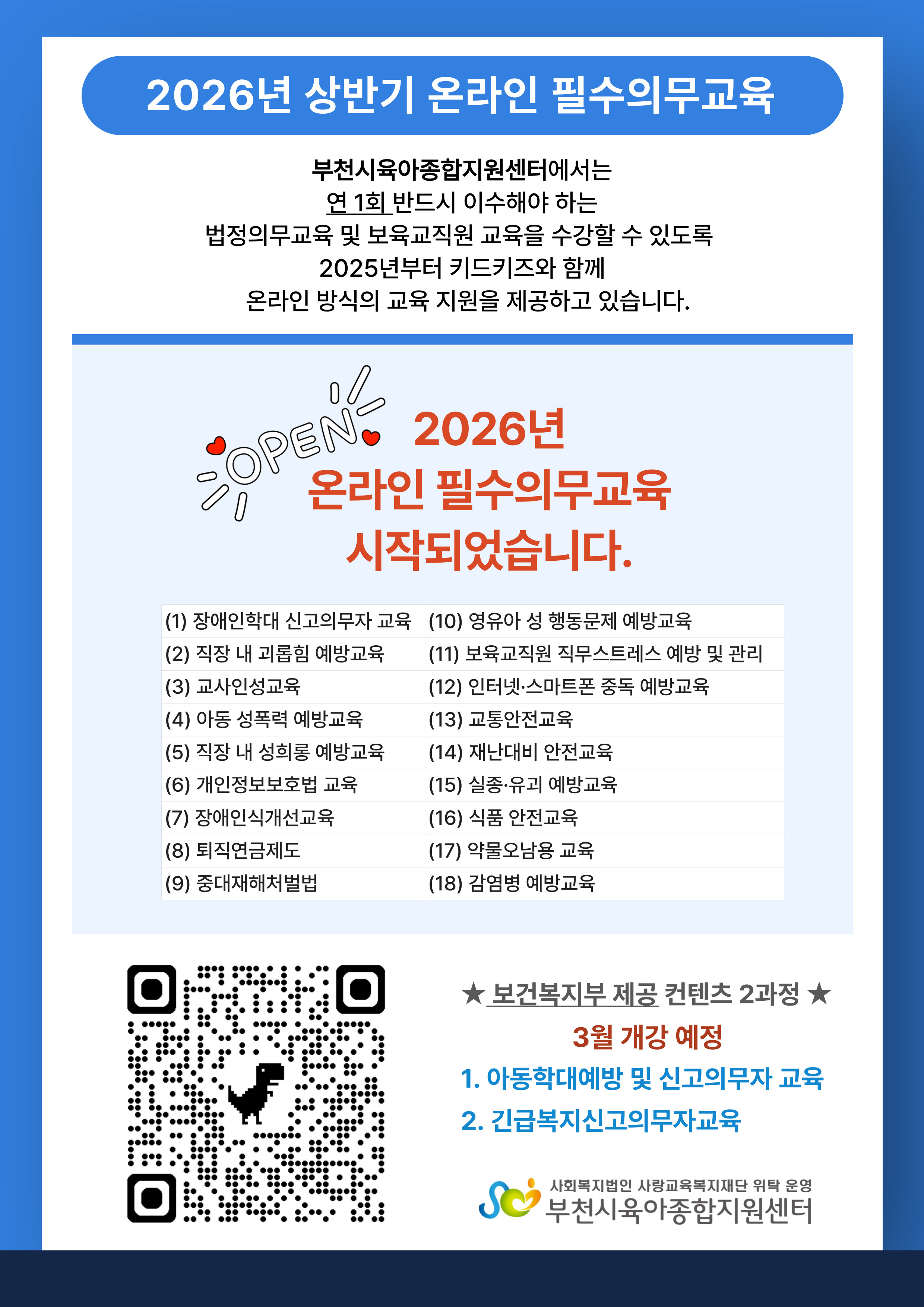 [센터] 2026년 부천시육아종합지원센터 사이버 연수원 오픈