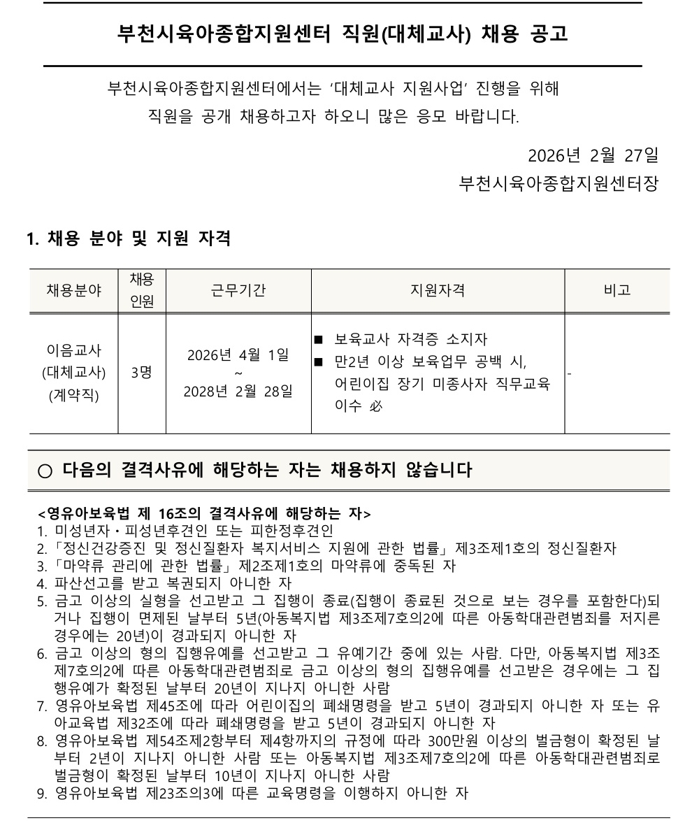 부천시 대체인력 지원