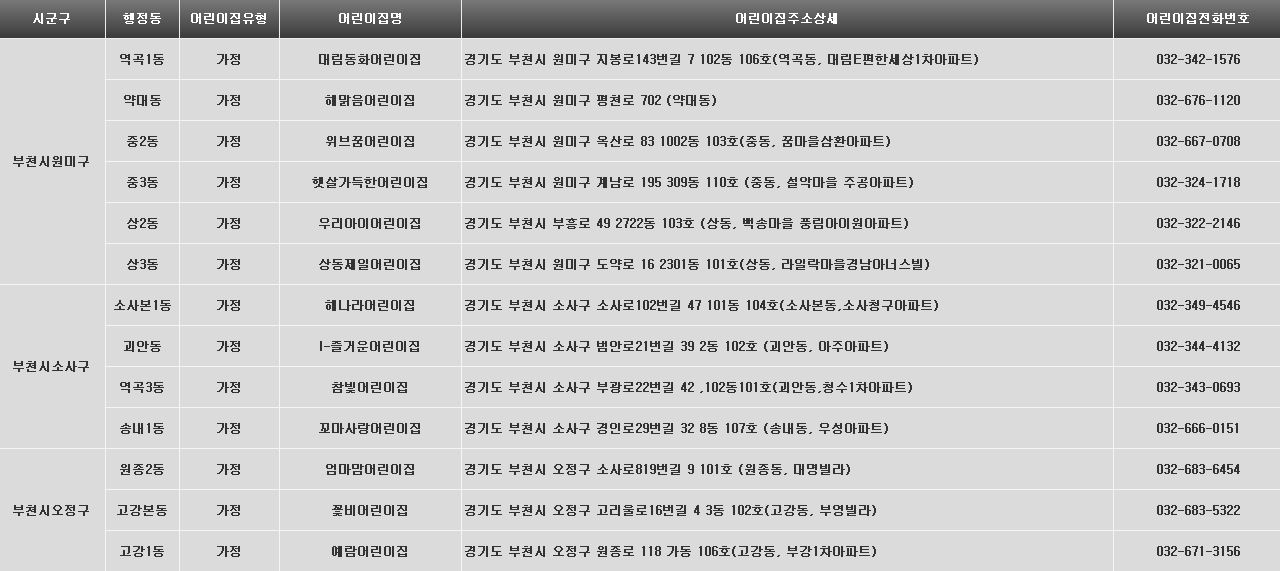 [센터] 부천시 및 경기도 내 0세아 전용 어린이집 현황 안내(26년 2월 기준)
