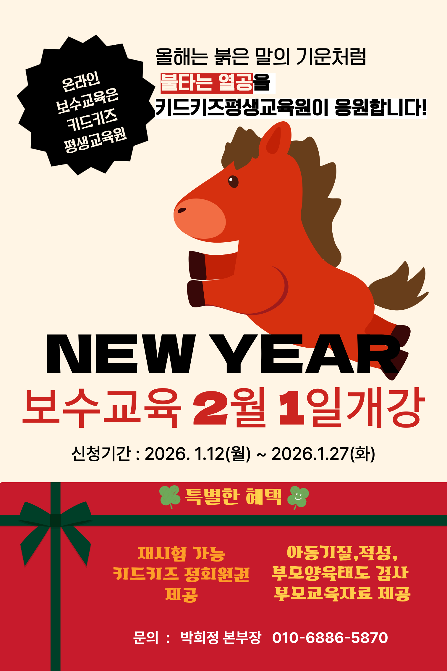 [외부] [키드키즈평생교육원] 보육교직원 온라인 특별직무교육 2026년 2월 개강반 안내