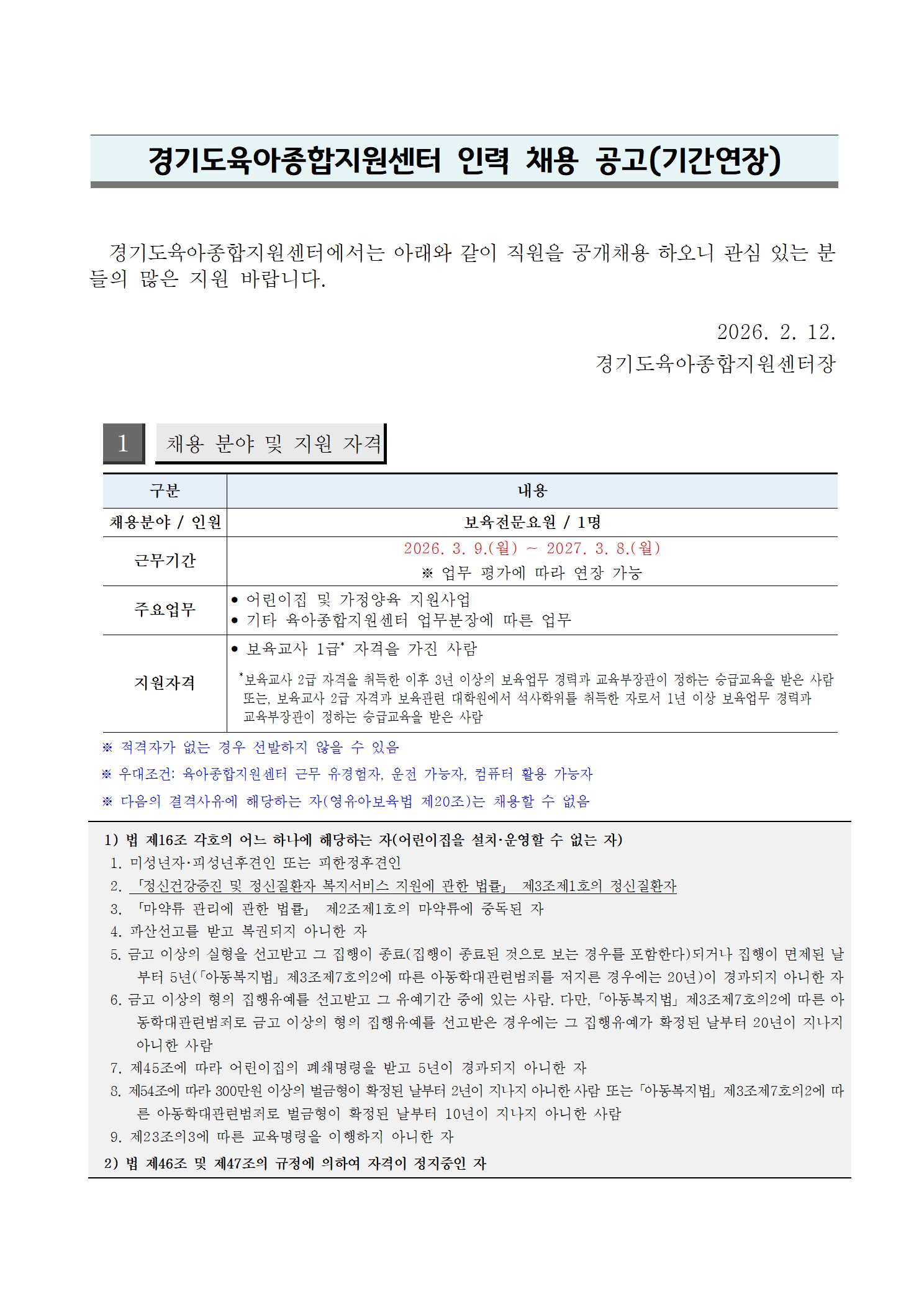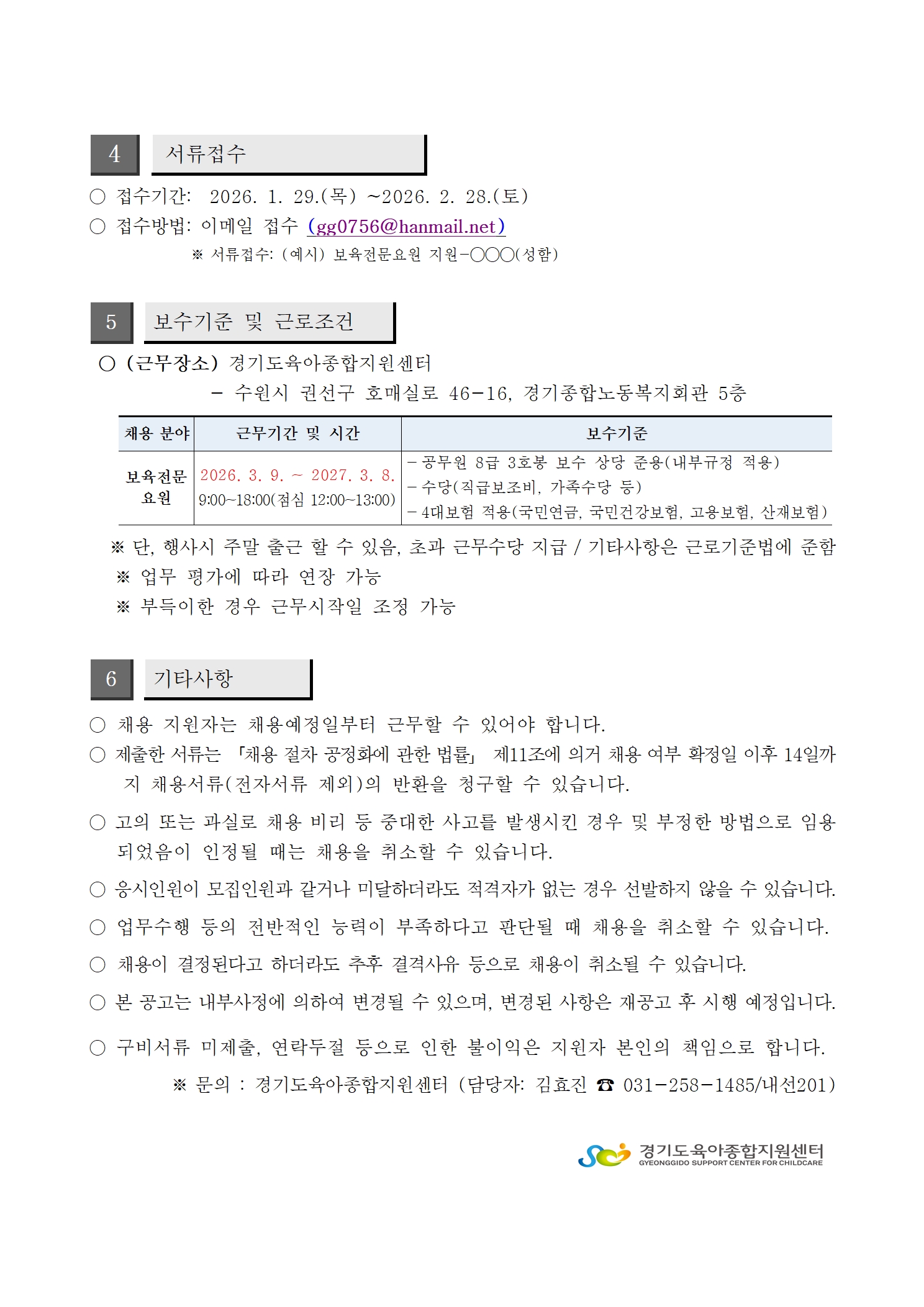 [외부] [경기도육아종합지원센터] 직원(보육전문요원) 채용 안내