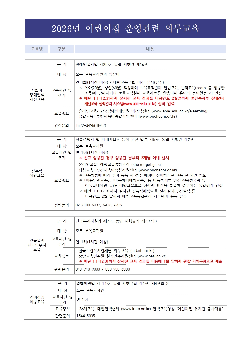 [센터] 2026년 어린이집 운영관련 의무교육 현황