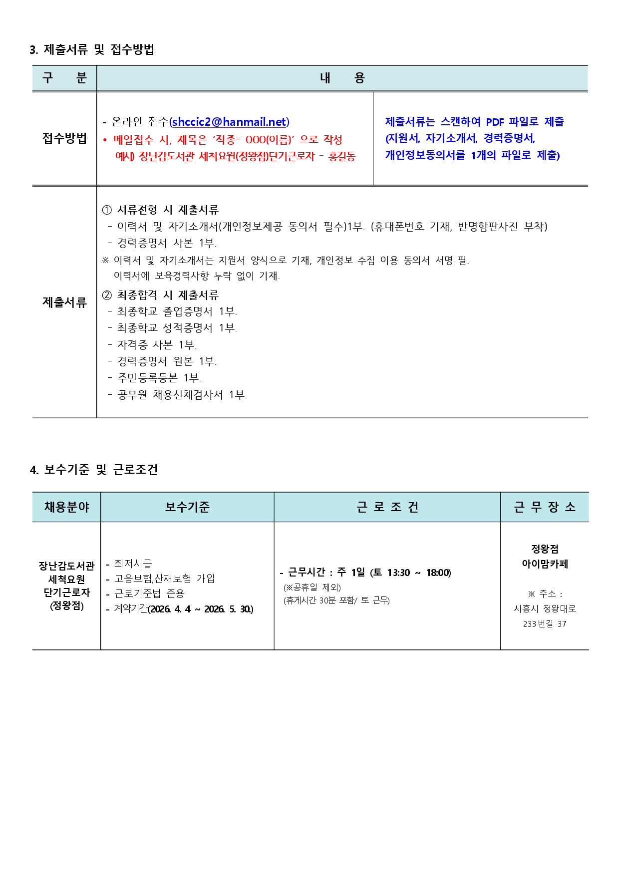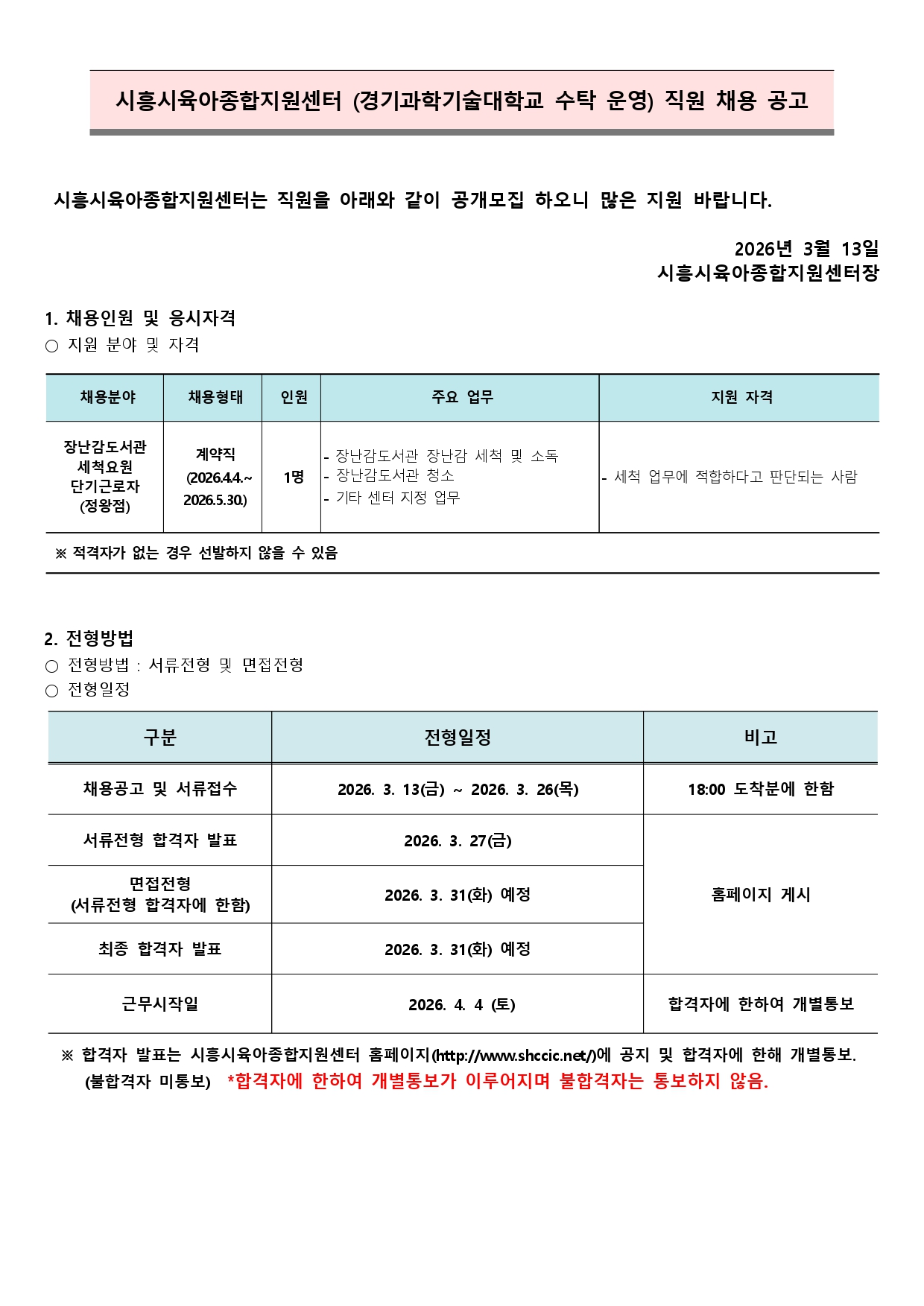 [외부] [시흥시육아종합지원센터] 장난감도서관 세척요원 - 정왕점 채용 안내
