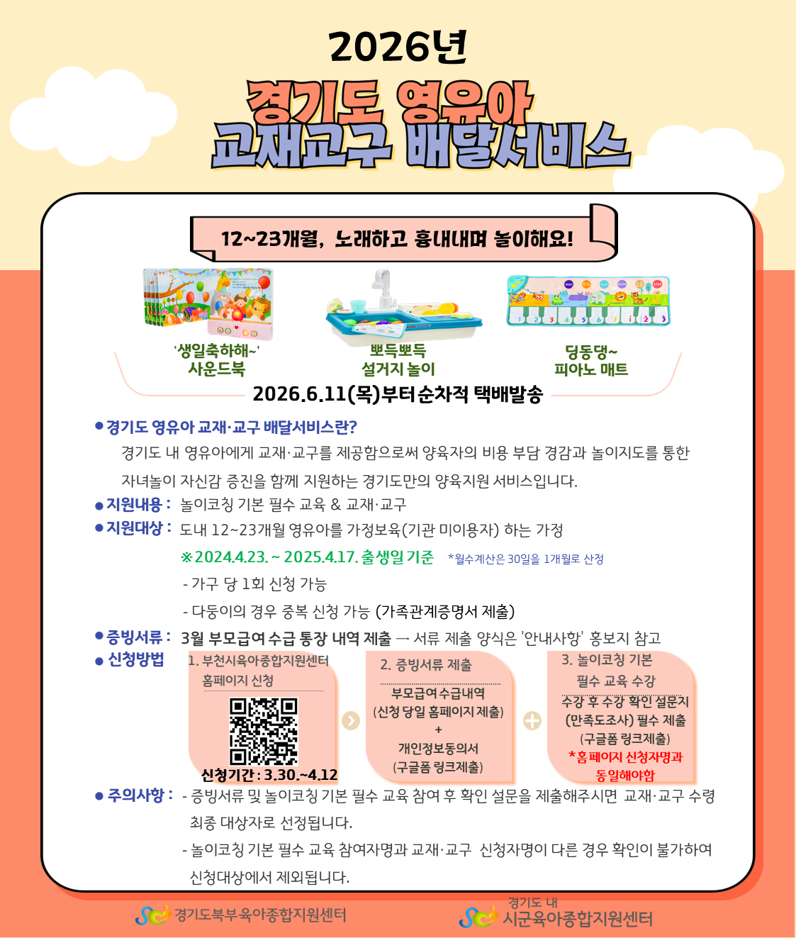 * 부천시육아종합지원센터 홈페이지 접수 : 2026.3.30(월)~2026.4.12(일)