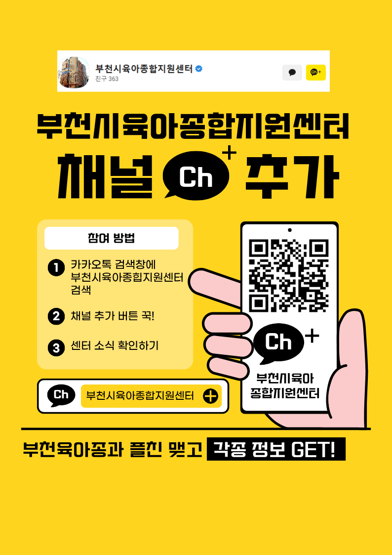 [센터] 부천시육아종합지원센터 카카오톡 채널 친구 추가 안내