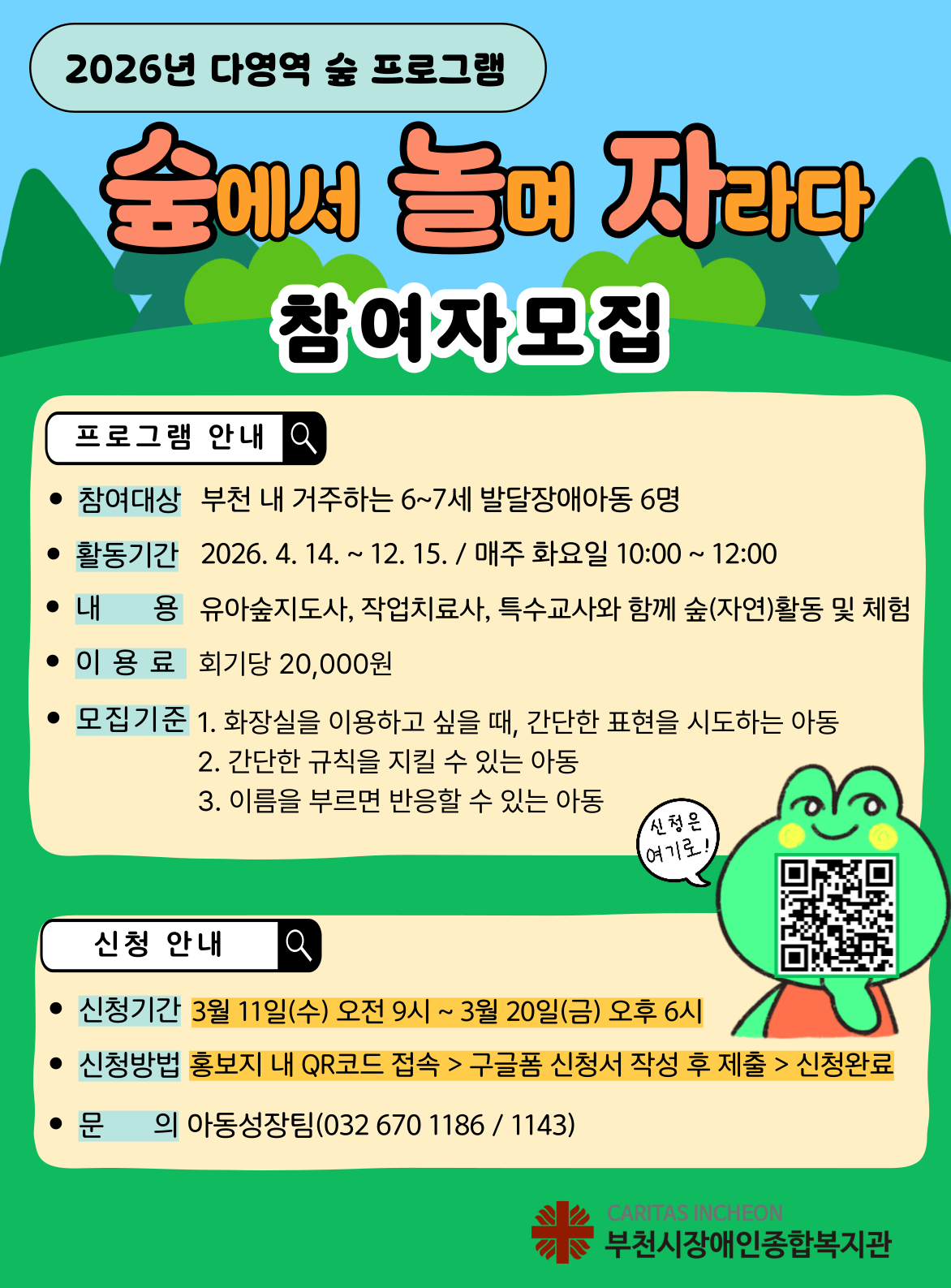 [외부] [부천시장애인종합복지관] '숲에서 놀며 자라다' 프로그램 안내