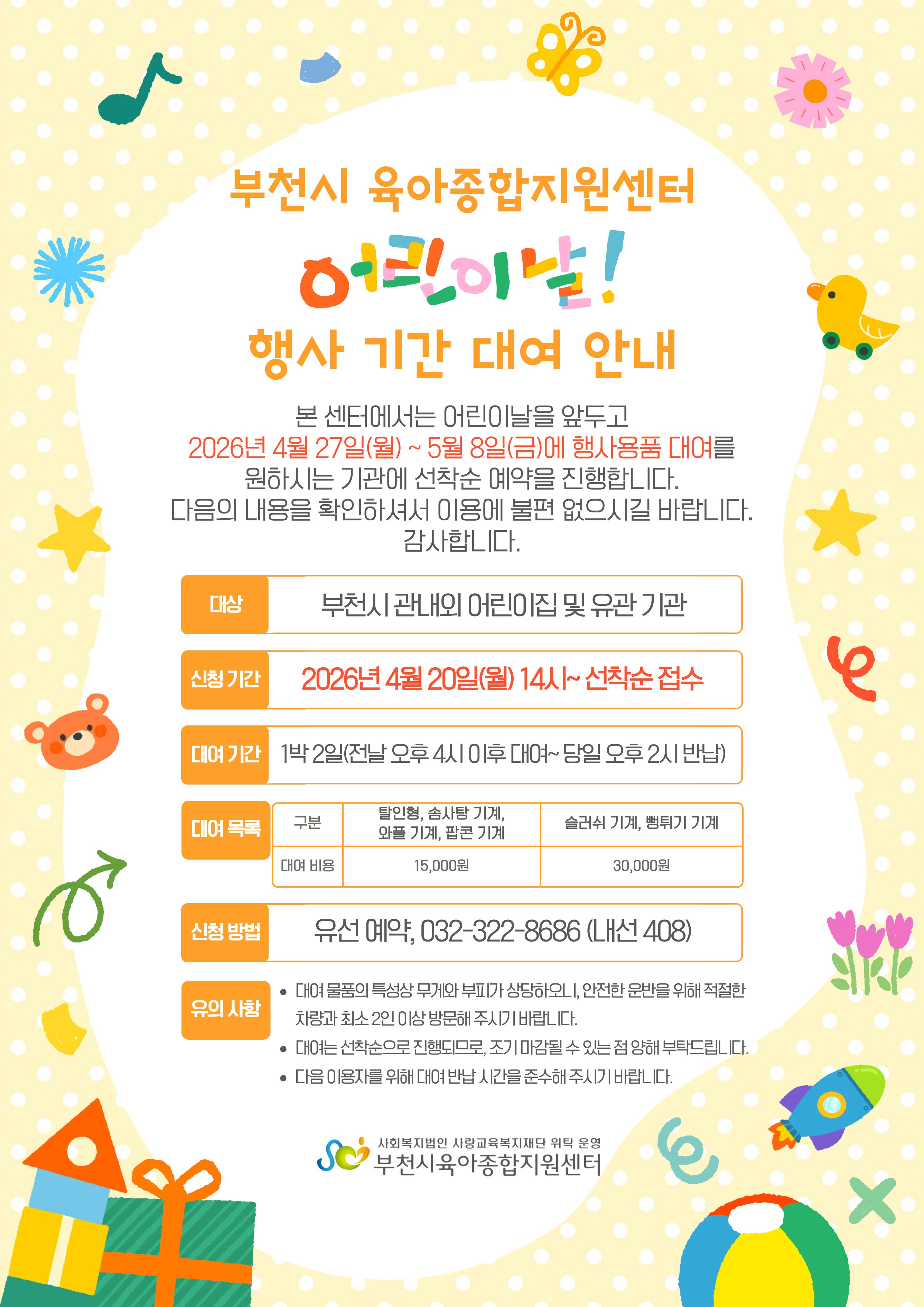 [센터] 2026년 어린이날 행사 기간 대여 안내