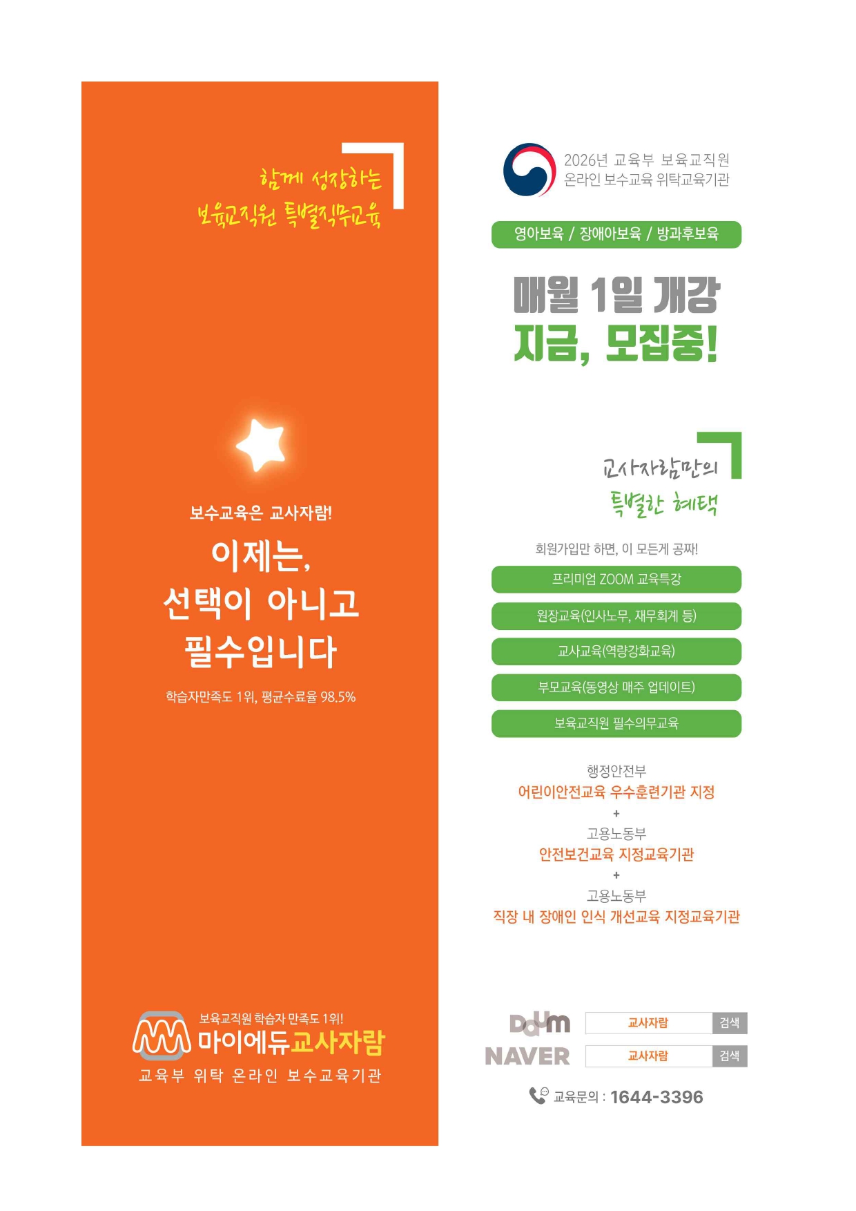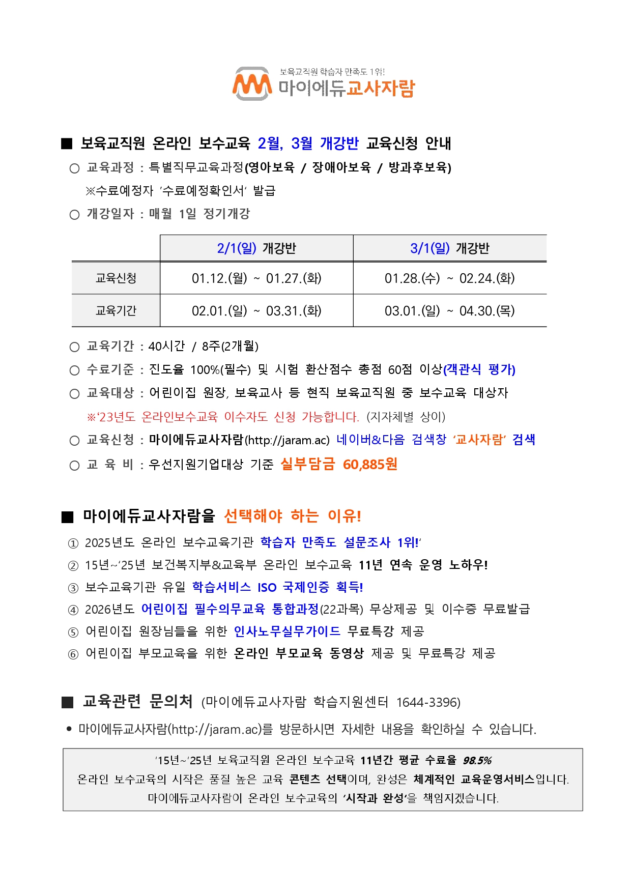[외부] [마이에듀교사자람] 보육교직원 온라인 보수교육 2월 개강반 교육신청안내