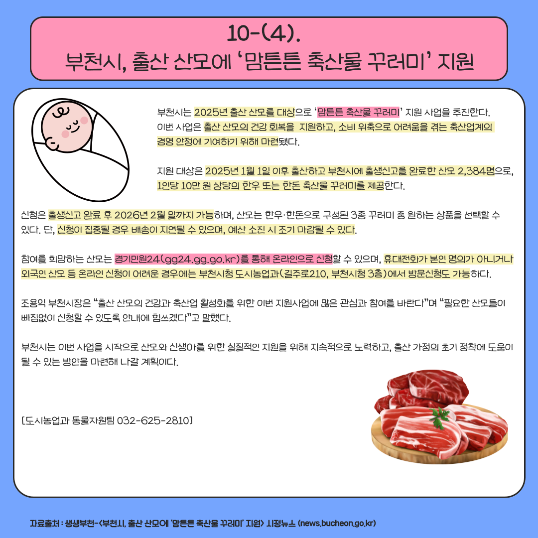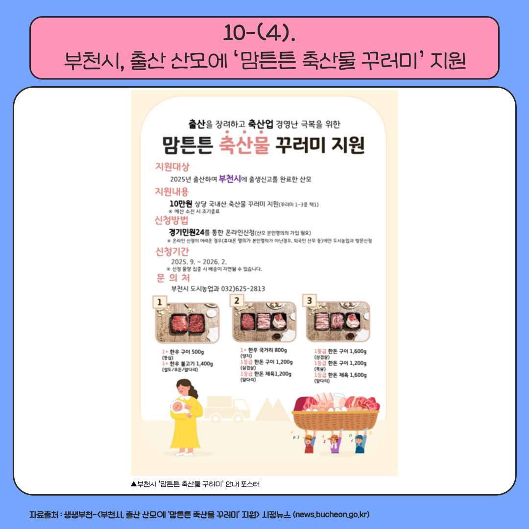 10월 육아정보제공(4)-부천시, 출산 산모에 '맘튼튼 축산물 꾸러미' 지원