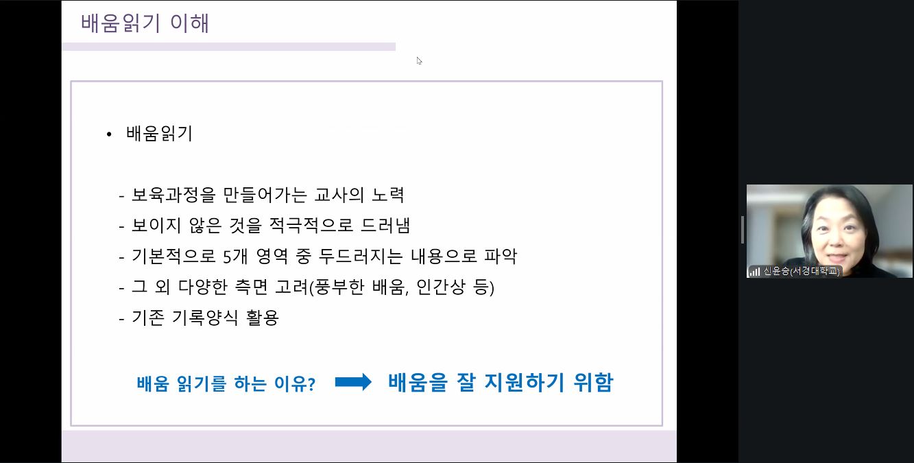 유아 놀이 중심 배움지원 교육이 신윤승 교수(서경대학교 아동청소년학과)강의로 진행되었습니다.
