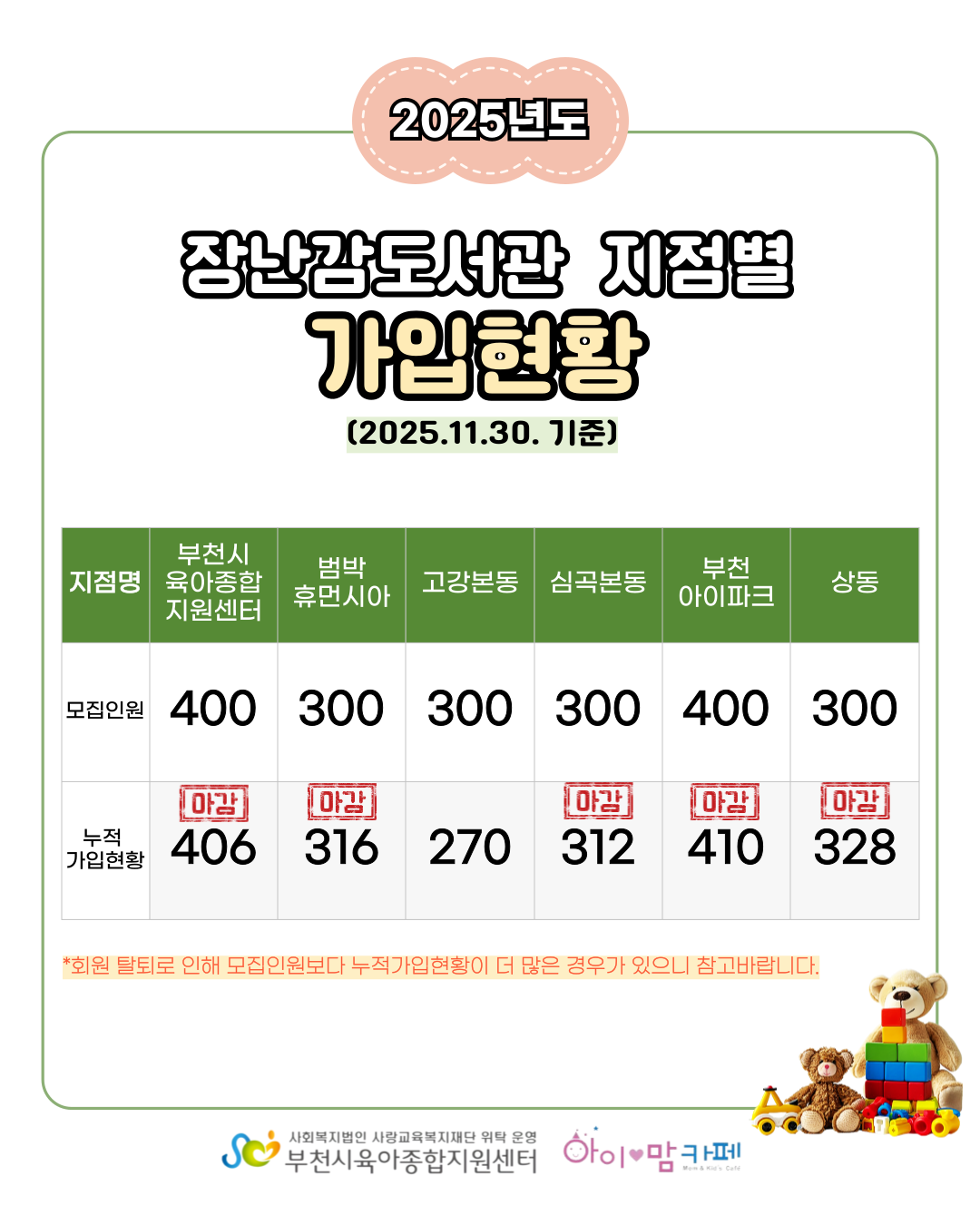 [부천아이파크] 2025년 장난감도서관 지점별 가입현황(11.30기준)