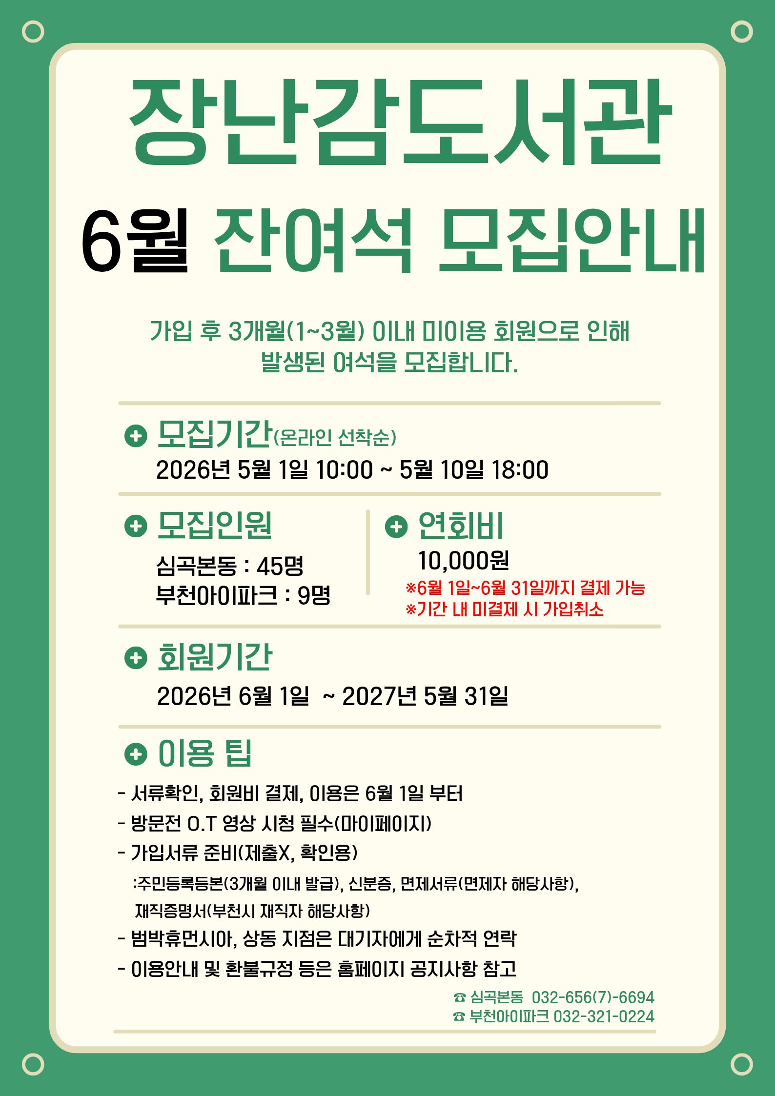 [심곡본동] 2026년 장난감도서관 회원 잔여석 모집 안내(심곡본동, 부천아이파크)