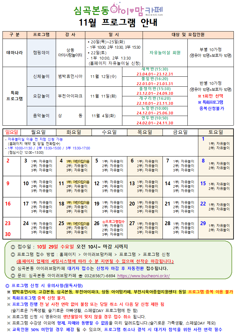 [심곡본동] 11월 프로그램 안내문 및 일정표