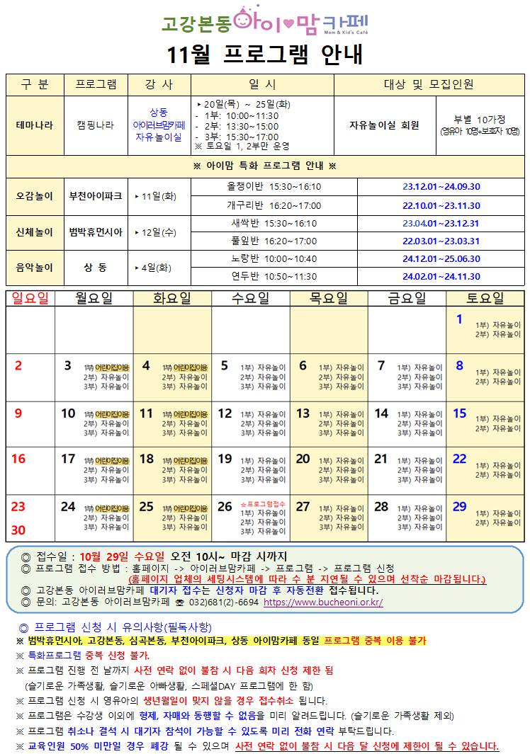 [고강본동] 11월 프로그램 안내문 및 일정표