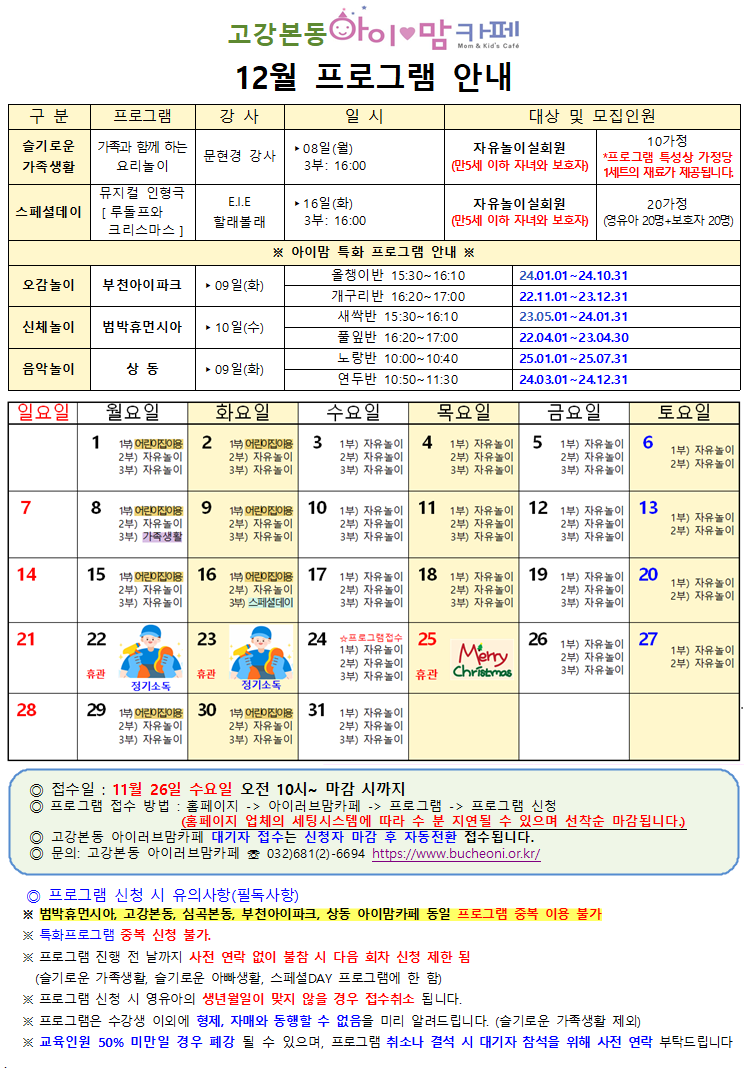[고강본동] 12월 프로그램 안내문 및 일정표