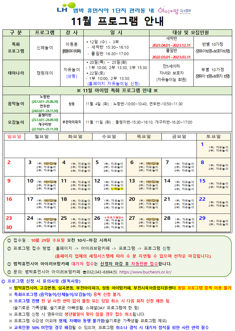 [범박휴먼시아] 11월 프로그램 안내문 및 일정표