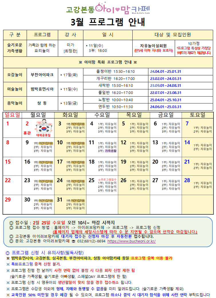 [고강본동] 26년 3월 프로그램 안내문 및 일정표