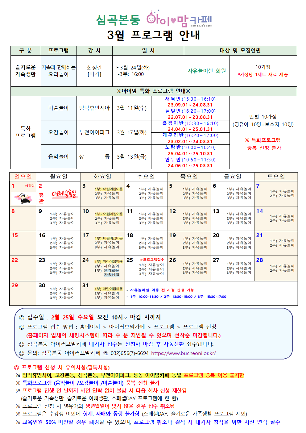 [심곡본동] 26년 3월 프로그램 안내문 및 일정표