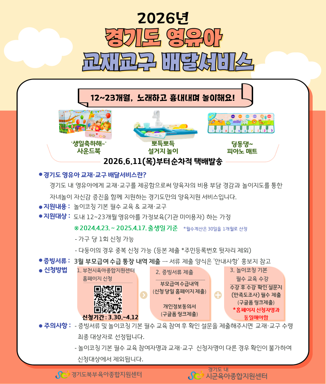 [부천아이파크] (12~23개월 가정보육대상) 영유아 교재교구 배달서비스 1차 접수 홍보안내문