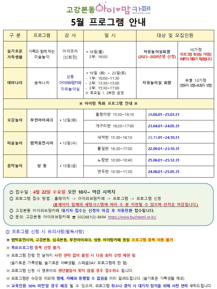 [고강본동] 5월 프로그램 안내문