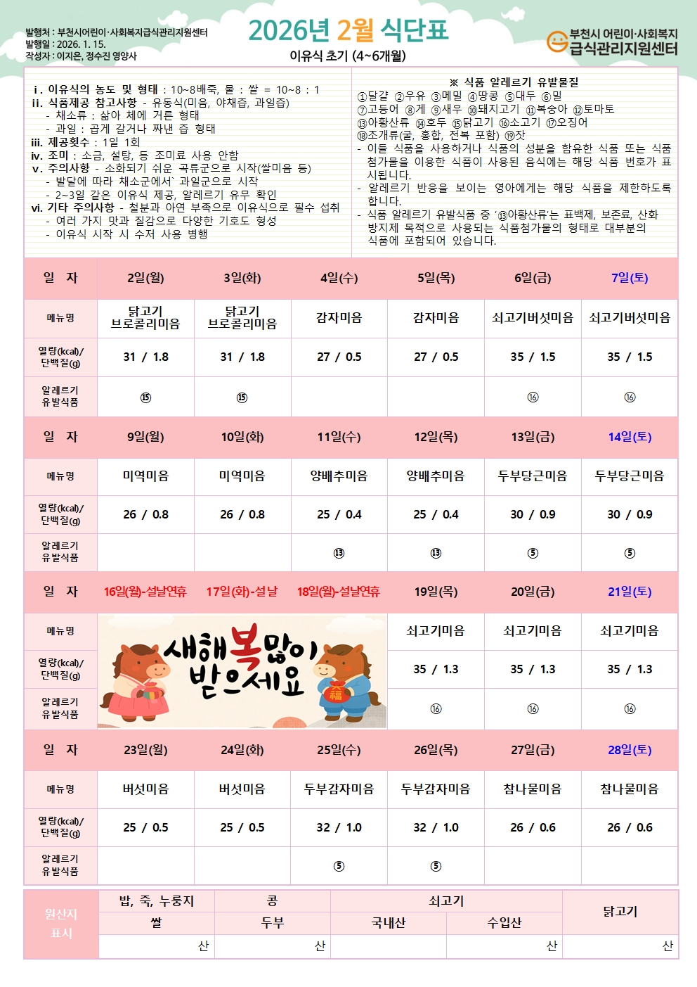 2026년 1월 조리법 안내 - 이유식