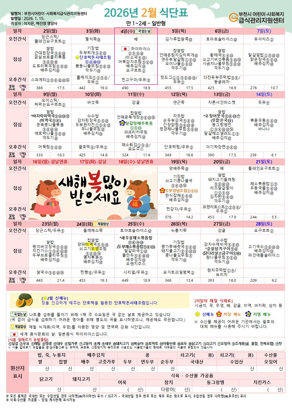 2026년 2월 유아 식단
