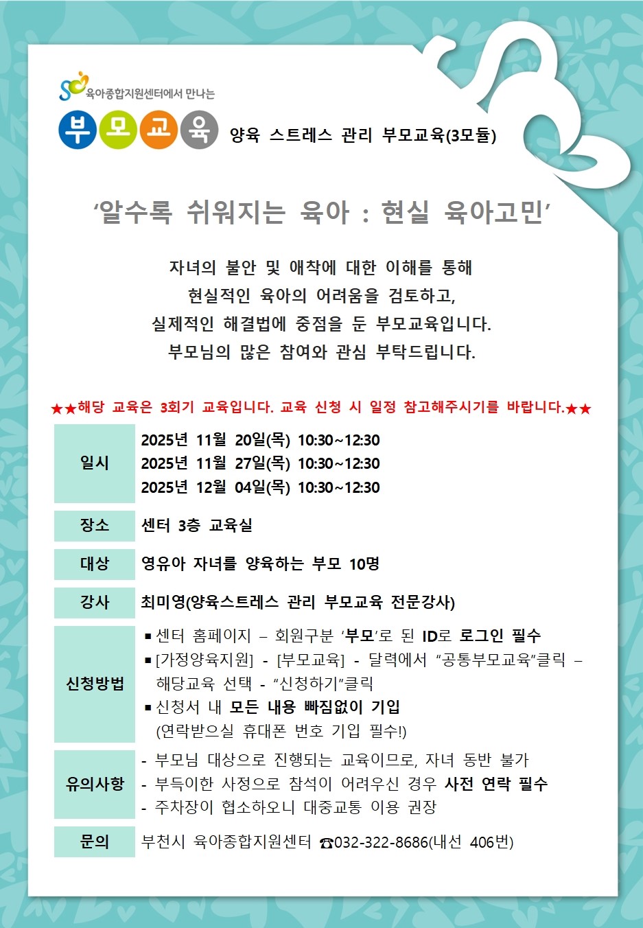 [공통부모교육] 양육 스트레스 관리 부모교육 3모듈. 알수록 쉬워지는 육아 : 현실 육아고민