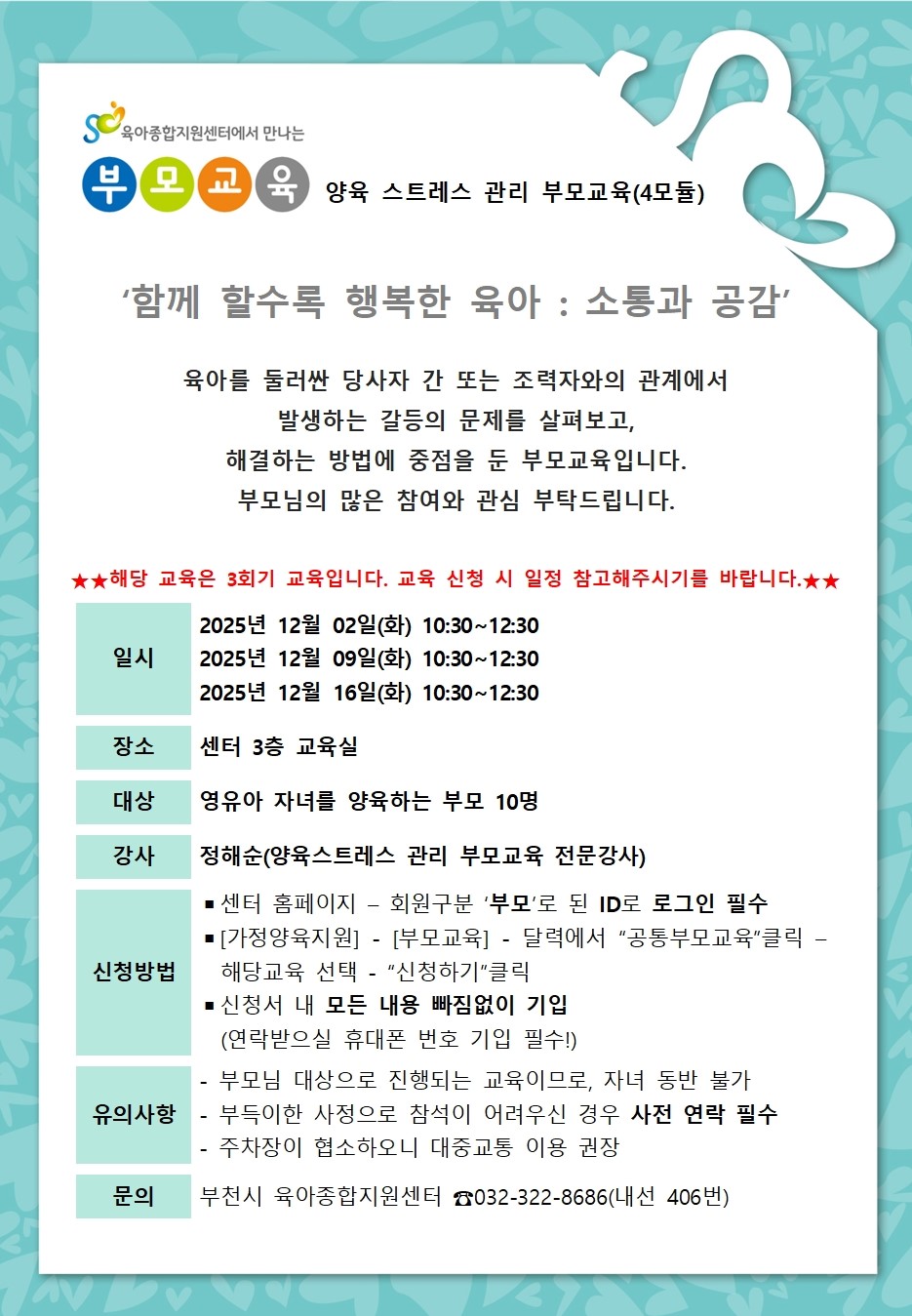 [공통부모교육] 양육 스트레스 관리 부모교육 4모듈. 함께 할수록 행복한 육아 : 소통과 공감