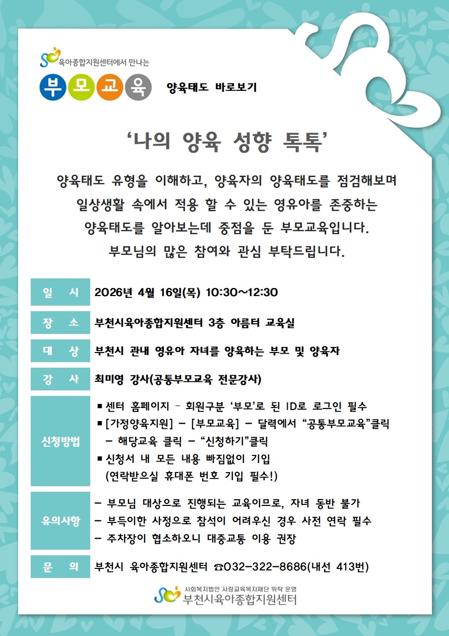 [공통부모교육] 아동학대예방 부모교육(민간어린이집연합회 상동,대산동 지구)
