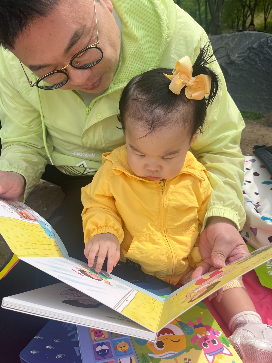엄마 아빠와 진달래 동산에서 예쁜 눈 코 입 그림책을 읽었어요^^