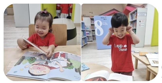 꼬마숲로이어린이집 새싹반 동화 도서관에서 그림책 보기